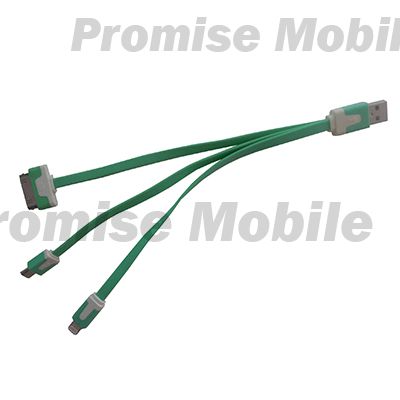 Купить ОПТОМ кабель USB для КПК / коммуникатора 3 в 1 iPhone 4 + iPhone 5 + MicroUSB плоский узкий <зеленый> можно в нашем интернет-магазине PromiseMobile.ru.